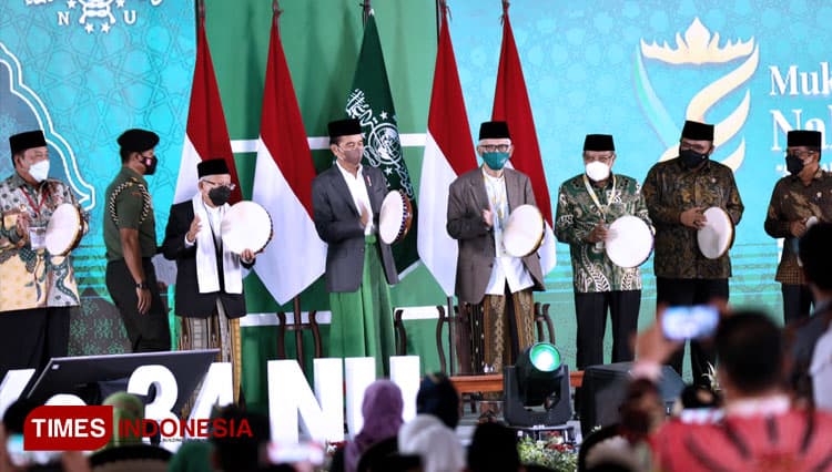 TIMES Minahasa/Presiden Jokowi (Joko Widodo) membuka secara resmi Muktamar Ke-34 Nahdlatul Ulama di Pondok Pesantren Darussa’adah, Gunung Sugih, Lampung Tengah, Rabu (22/12/2021). (FOTO: Moh Ramli/TIMES Indonesia)